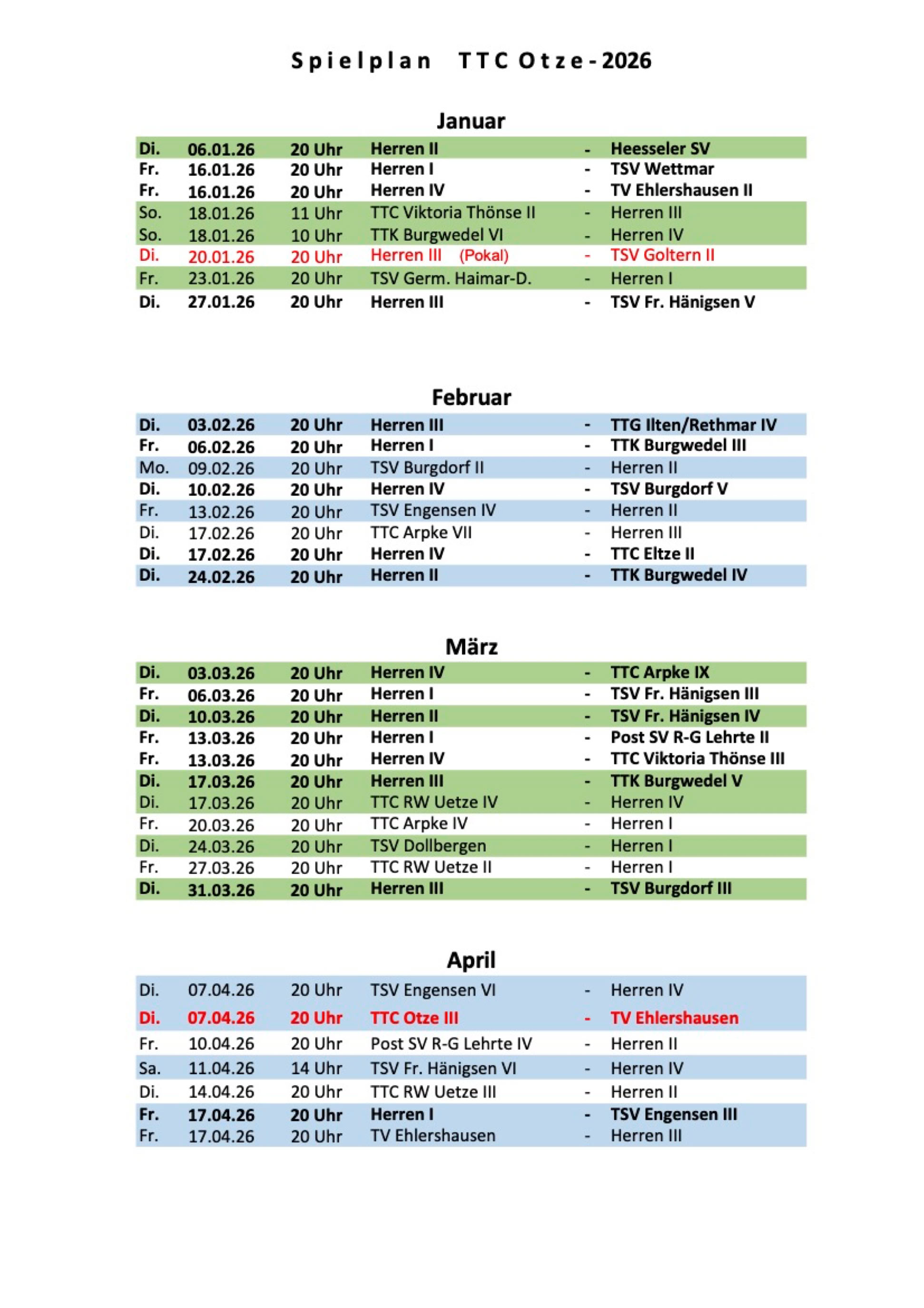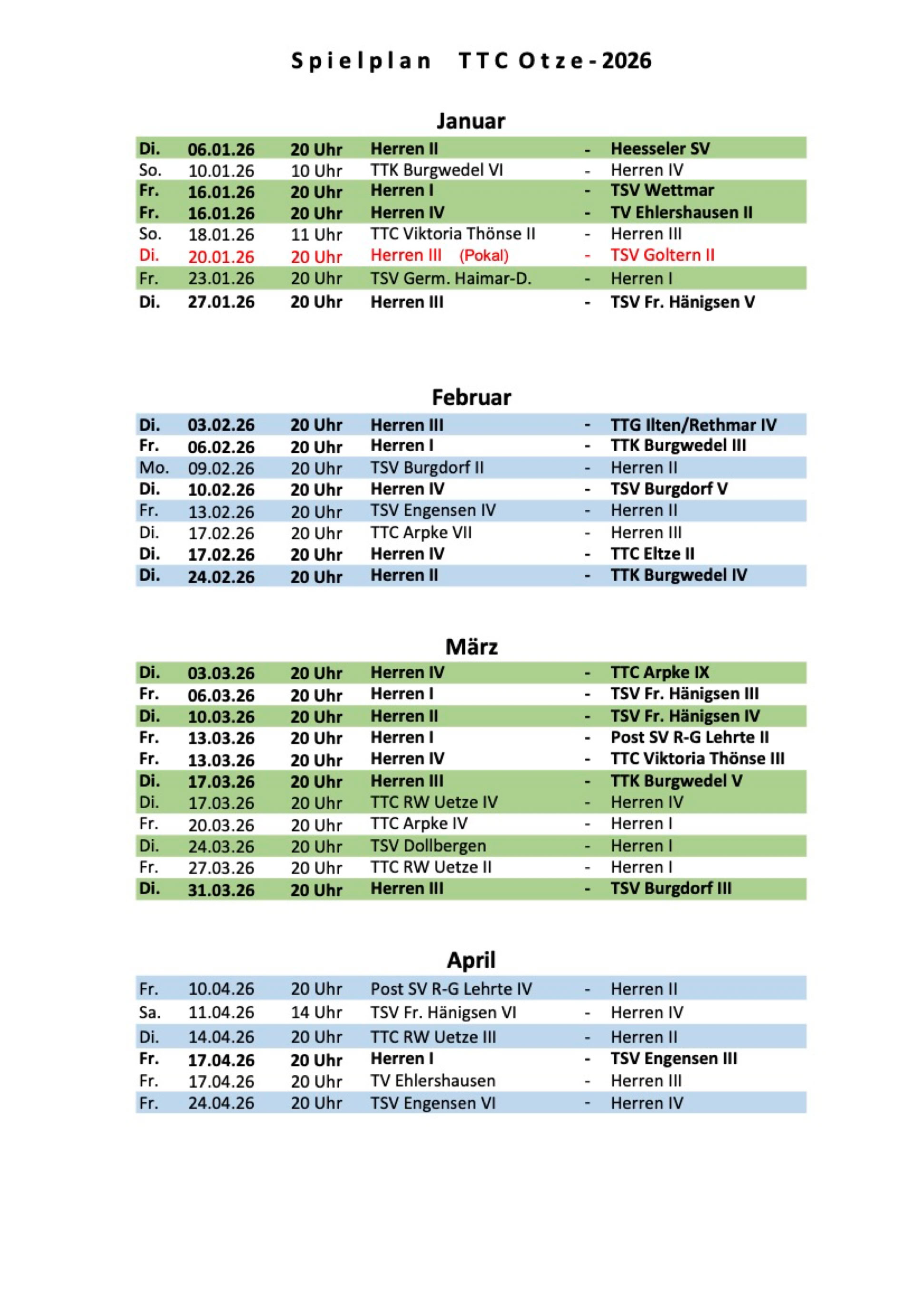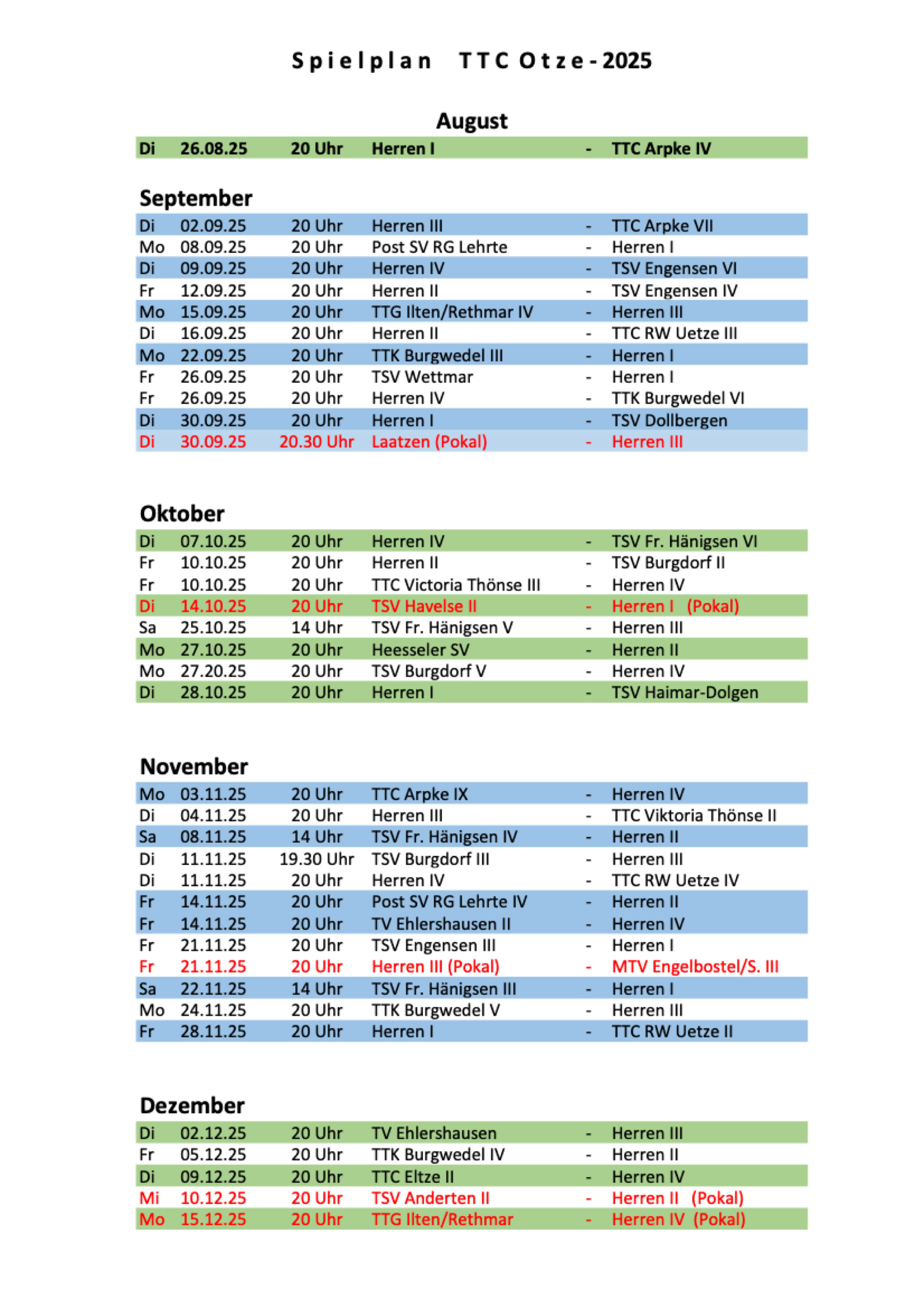 1. Herren 2. Herren 3. Herren 4. Herren Damen Vorgabeturnier Kuddelmuddel Skat
